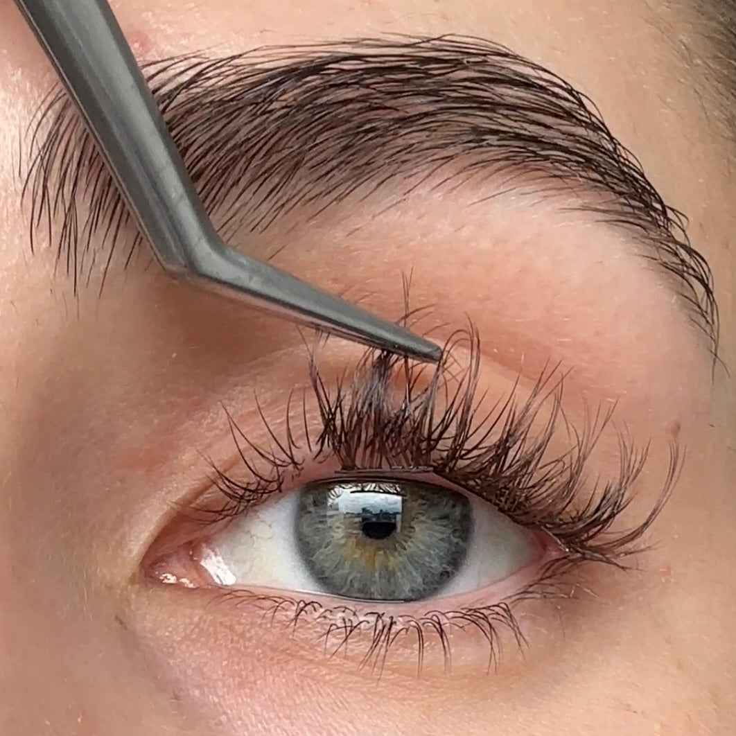Unsere ultraleichten, vorgeschnittenen braunen Wimpernbänder sorgen für eine natürliche Verlängerung ohne künstlichen Look.